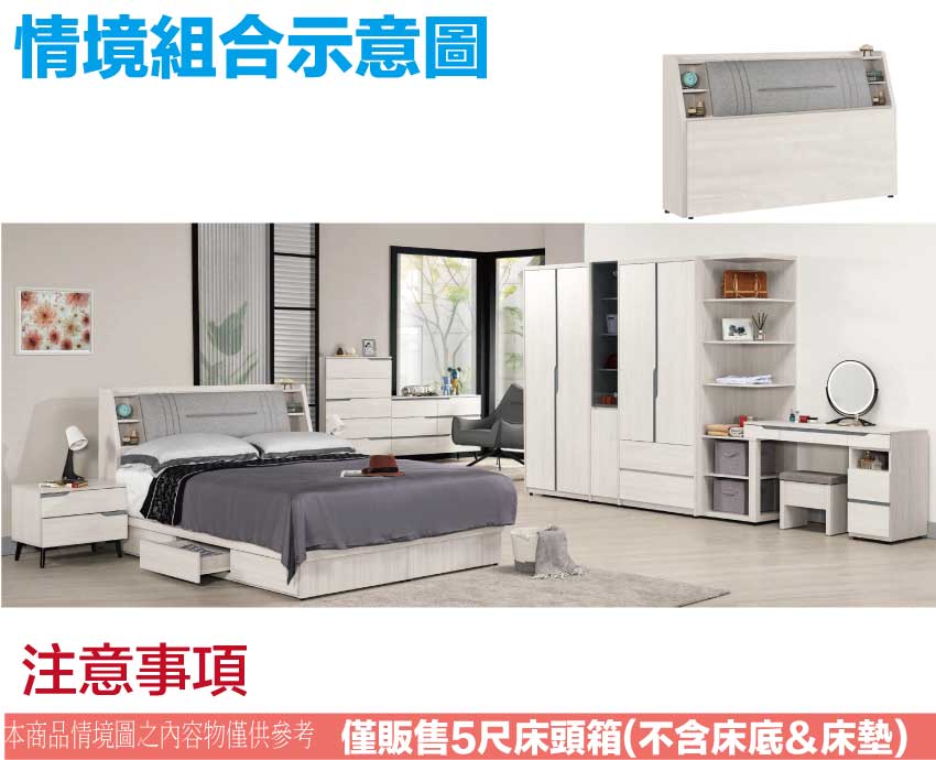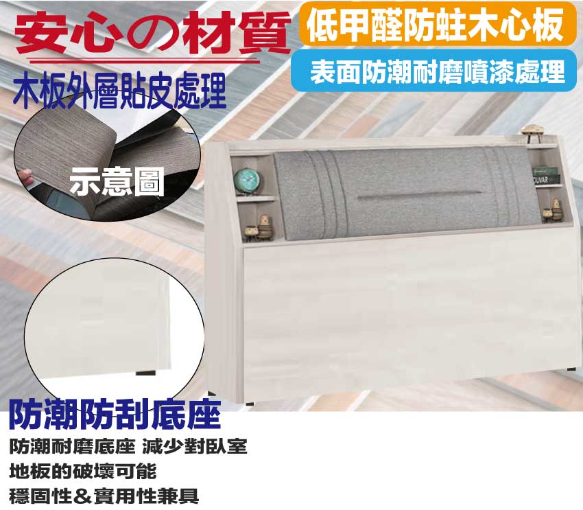 搭配床頭可掀式床枕板+內&外開放層格+便利插座設置等收納空間設計