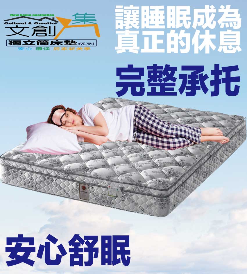 【文創集-床墊系列】硬式獨立筒石墨烯乳膠6尺雙人加大PU護框床墊◆商品尺寸:(寬)180x (深)188 x (高)26.5公分◆商品材質:Graphene石墨稀紗線針織舒柔表布+抗菌植物性乳膠墊+防穿刺透氣棉+3D防滑&防潑水底表布 +高張力支撐棉+高張力結晶長織棉+PU 360度鑽石棉護框+3D立體特殊氣流車花+高密度透氣釋壓棉+高碳鋼740顆2.4mm靜音抗擾中鋼彈簧(袋裝獨立筒彈簧)◆商品保固:中鋼彈簧體保固5年(正常使用),保用10年本產品款式共有單人加大(105cm)&雙人(150cm)&雙人加大(180cm)等三種尺寸可供您選擇,請先確定床台的尺寸再購買