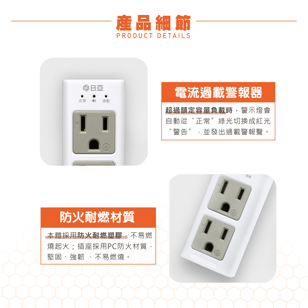 [寶旺旺] 日亞 智慧3孔2插 蜂鳴 分接器(新安規 電流過載 警報裝置) R-25W