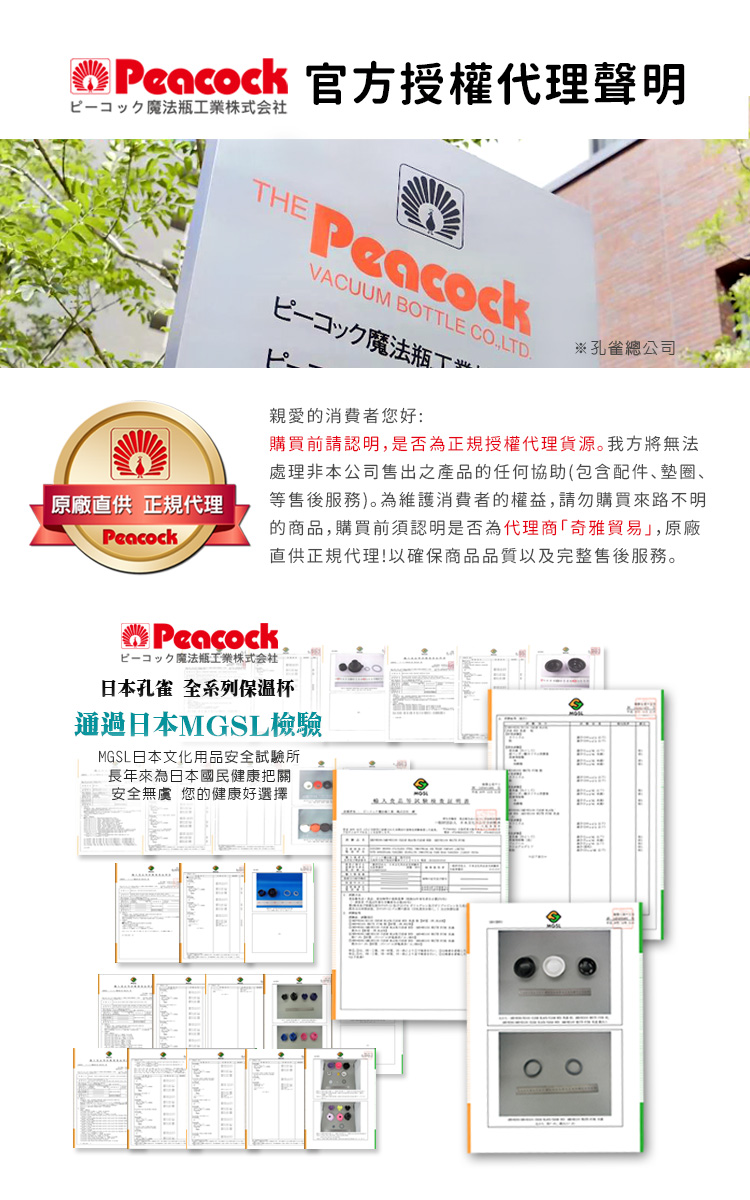 日本孔雀Peacock母公司於1923年創立於大阪,從事保溫瓶生產。與虎牌、象印牌同為日本保溫產品協會成員。
