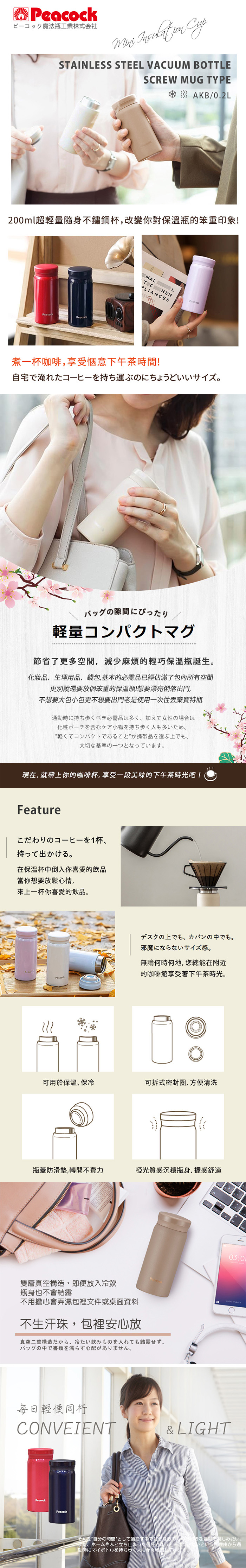 【日本孔雀Peacock】小資族 超輕量隨身不鏽鋼 保冷保溫杯200ML(迷你杯)-亮白
