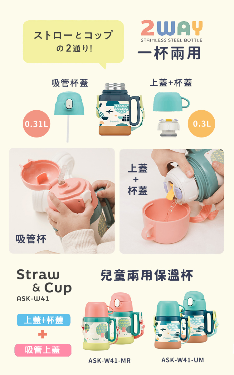 水杯+吸管兩用飲水口設計高保溫效果耐衝擊更強,保護孩子的健康。不論學習時刻、外出郊遊,安心陪伴孩子快樂成長!