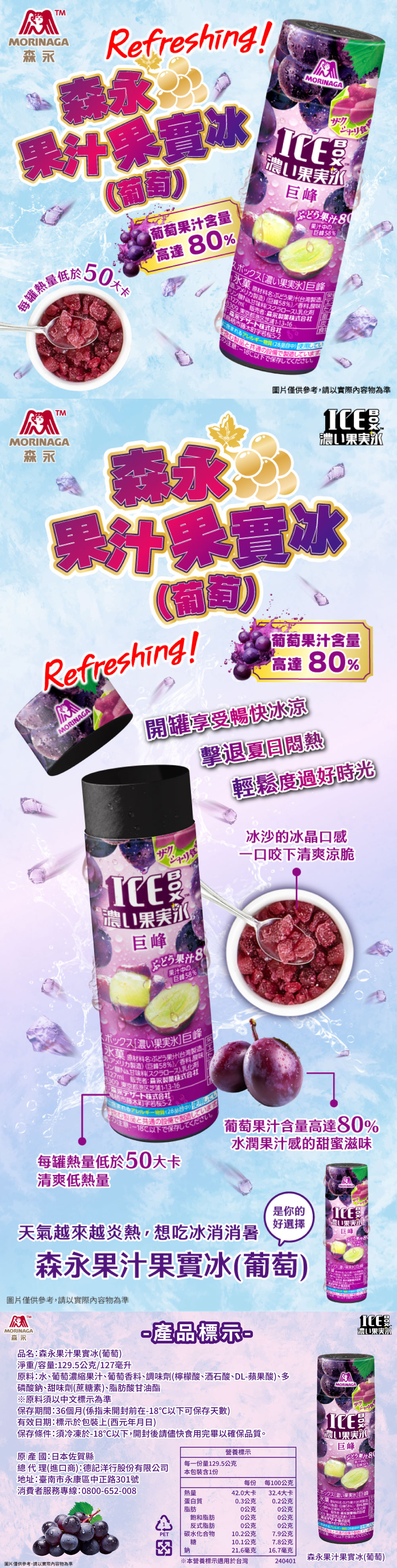 【日本森永】森永果汁果實冰(葡萄) 20罐 (129.5g/罐)