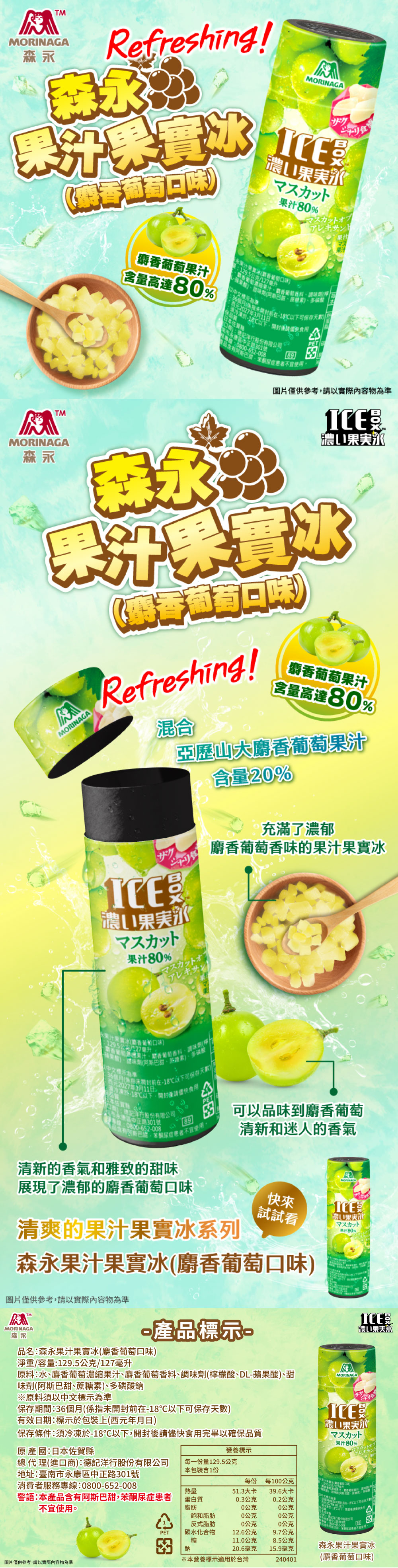 【日本森永】森永果汁果實冰(麝香葡萄口味) 20罐 (129.5g/罐)