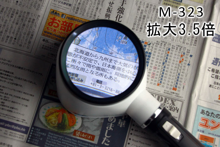 日本池田生產的 M 系列手持型照明放大鏡,提供不同的倍率與功能,以滿足各種使用者的需求:.M-100、M-170 屬於高倍率立式放大鏡,具有刻度板,可應用於檢驗工作、簡易量測等用途。.M-323 屬於低倍率立式放大鏡,80mm 大鏡面,視野寬廣,看到哪移到哪,適合銀髮族長時間閱讀,也適用於昆蟲觀察。.M-88 屬於高倍率立式放大鏡,具有刻度版,半開口式工作窗,可將鑷子伸入,適合低視能患者閱讀,也適用於精密工作。 產品特色日本製玻璃鏡片採用日本製造的青板玻璃鏡片,成像效果清晰。鏡片直徑 80mm,視野廣闊,適合做為閱讀輔助使用。固定焦距的機身設計本系列放大鏡的頭部已固定焦距,看到哪就移到哪,不需要將手長時間舉起,使用方便。機身採用強度高的 ABS 塑膠材質,質地細緻,觸感舒適好握。LED 白光照明採用 LED 白光燈做為照明光源,具有省電、低溫、高亮度等優點,讓您即使在昏暗環境也能看得清楚。(本產品出貨不附電池)高級拭鏡布【台灣限定】隨本產品附贈,精選高級拭鏡布,可輕易擦去鏡面上的指紋、髒污等,布料可水洗重複使用。注意事項.鏡片露出時請勿放置於太陽光下,以免造成危險。.規格所述焦距(工作距離)、眼距為實際測試結果,但可能因各人視力狀況不同而略有差異。.擦拭鏡面時,應先以乾淨布由單一方向輕輕擦拭,若畫圈或來回擦拭可能刮傷鏡片。.鏡片為玻璃鏡片,使用時請小心勿摔落,若不慎摔落應以厚報紙包起碎片,以防割傷。.長時間不使用請將電池取出,以避免電池漏液造成損壞。廢電池請回收。 產品規格放大倍率:3.5倍屈 光 度 :8 Dpt鏡面尺寸:80mm鏡片材質:日本製青板玻璃鏡片方式:Bi-convex 雙凸鏡片照明光源:LED 白光燈眼 距:200mm使用電池:2號 (C型) 電池*2(本產品出貨不附電池)尺 寸:長250x寬128x高72mm重 量:238g產 地:日本品牌介紹日本池田最初名為「池田レンズ製作所」,創立於大正12年 (西元1923年),位於大阪市生野區,專注於鏡片生產與加工。昭和37年 (西元1962年) 正式更名「池田レンズ工業株式会社」,專營放大鏡生產與銷售,讓放大鏡不僅是銀髮族的閱讀工具,擁有多款專利之工作用放大鏡、放大眼鏡等,讓民眾工作時能避免過度用眼,提升工作效率。品質優良、選擇多樣、價格實惠,是日本池田製品 的特色。LOUPE STUDIO 是日本池田在日本國內的網購店鋪名,熱銷全日本。華堂光學實業是日本池田的台灣長期合作夥伴。