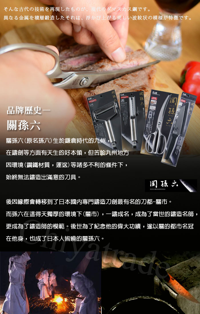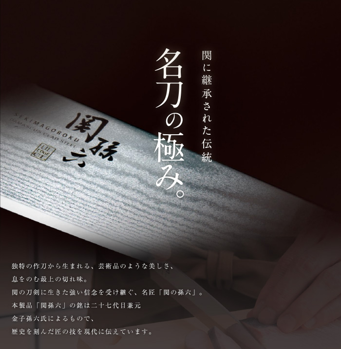 所有在日本武士刀上的傳統技術,都會在關孫六的系列產品中完美體現,因為關孫六的系列產品已繼承了日本名刀中應具有的美感和特色,永載歷史的名將之技傳承至今。