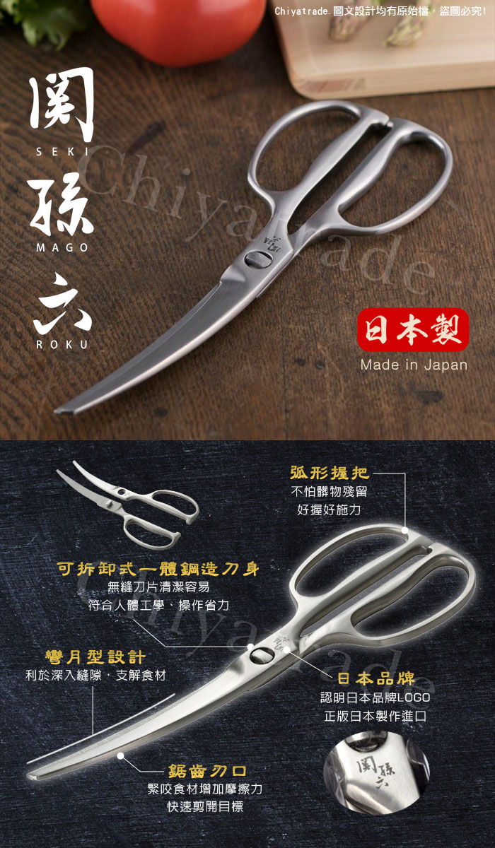 鋸齒刃口設計,能夠緊咬食材增加摩擦力,快速剪開目標不打滑,銳利好剪不須使用砧板。