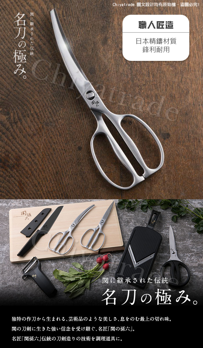 貝印另一高級系列「關孫六」,「關孫六」的鍛造者名為二十七帶名目兼元金子孫六氏,他所鑄造的刀劍,有「最上大業物」(日本刀劍史上最高榮譽)的美譽,為日本名刀劍之一,而該系列就是傳承了這位名匠對刀藝的美學與執著,將鑄造名刀劍的精神運用在製作家用刀具上。