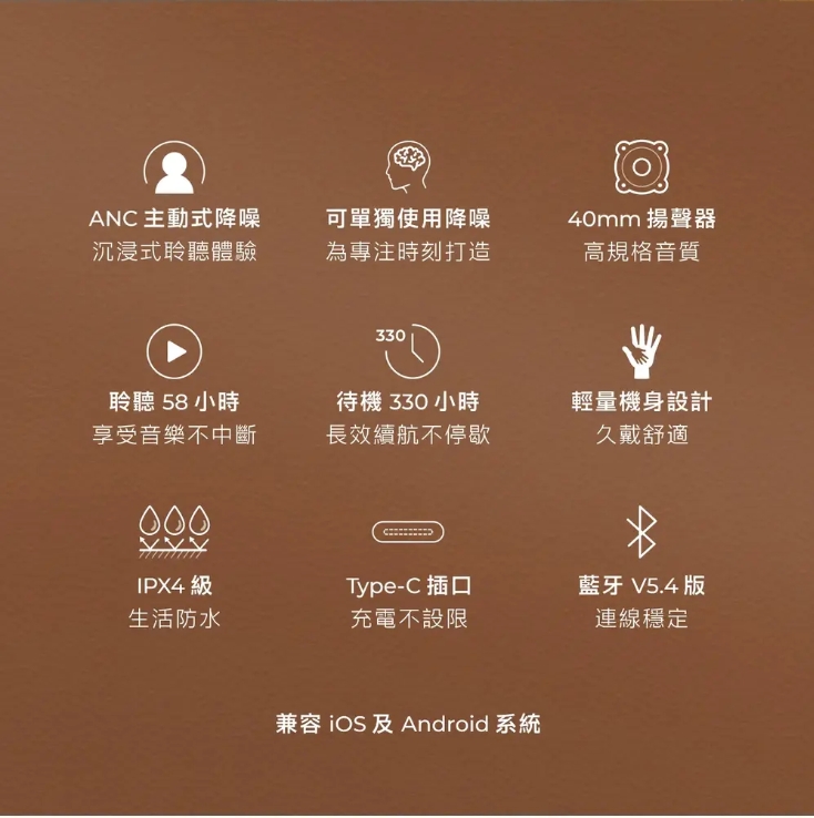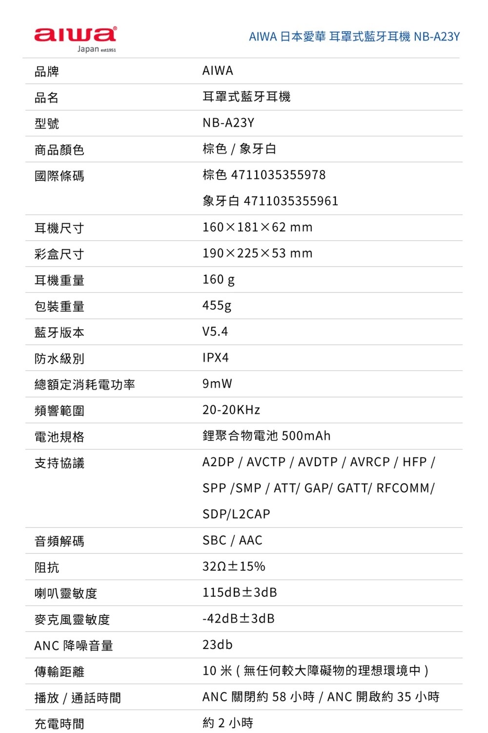 ANC主動式降噪 【日本aiwa 愛華】Aiwa 耳罩式藍牙耳機 NB-A23Y ,開闊聲場 × 主動降噪|把噪音留在世界外