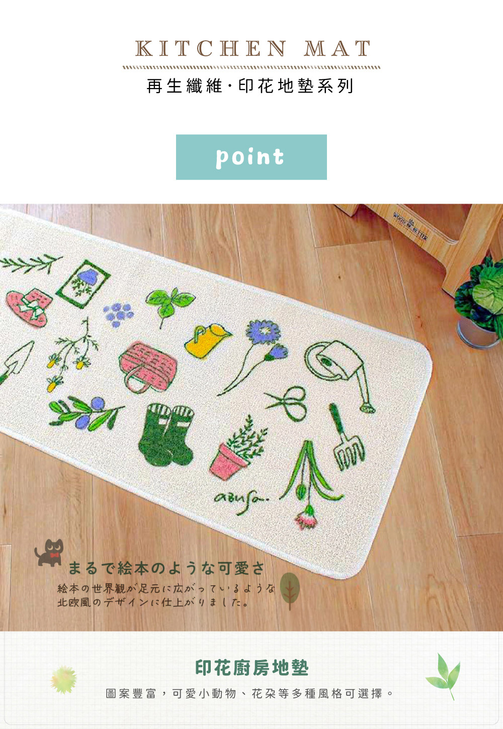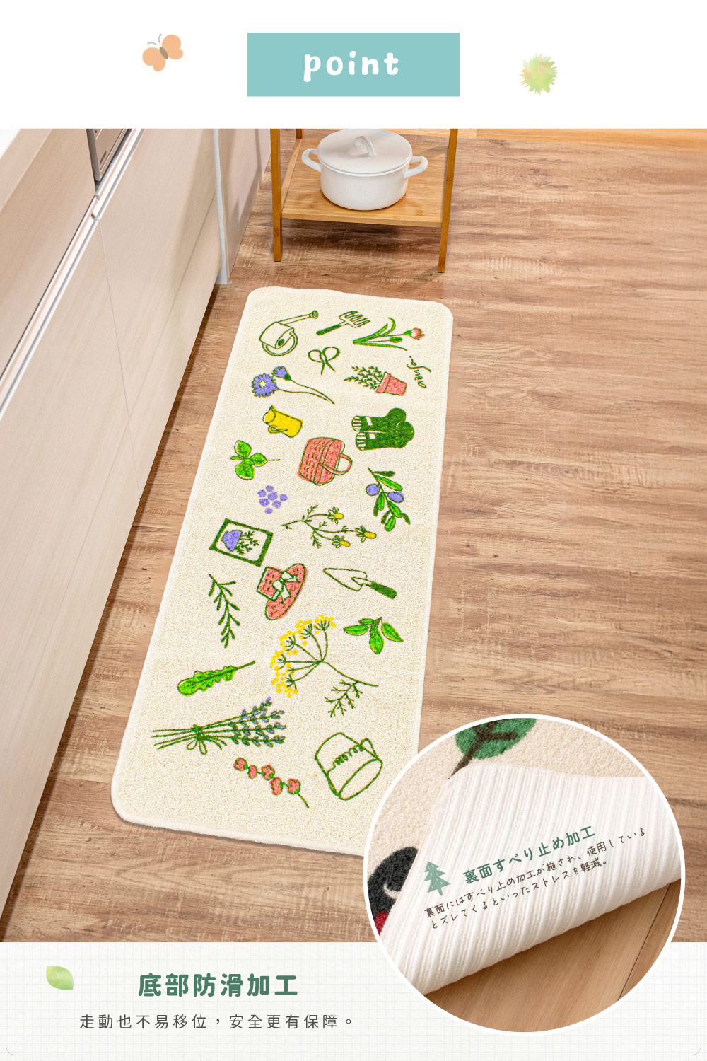 【日本Oka】日本製再生印花廚房地墊45×120cm(綠野小徑款/可機洗/厚4mm)