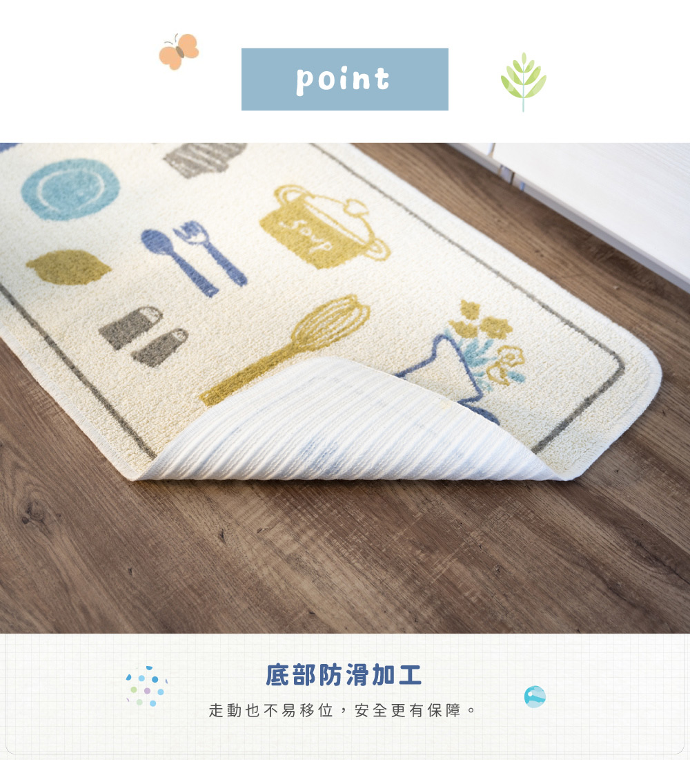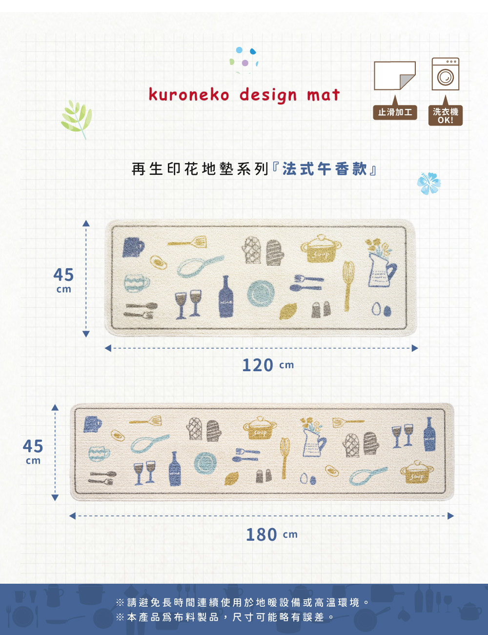 【日本Oka】日本製再生印花廚房地墊45×120cm(法式午香款/可機洗/厚4mm)