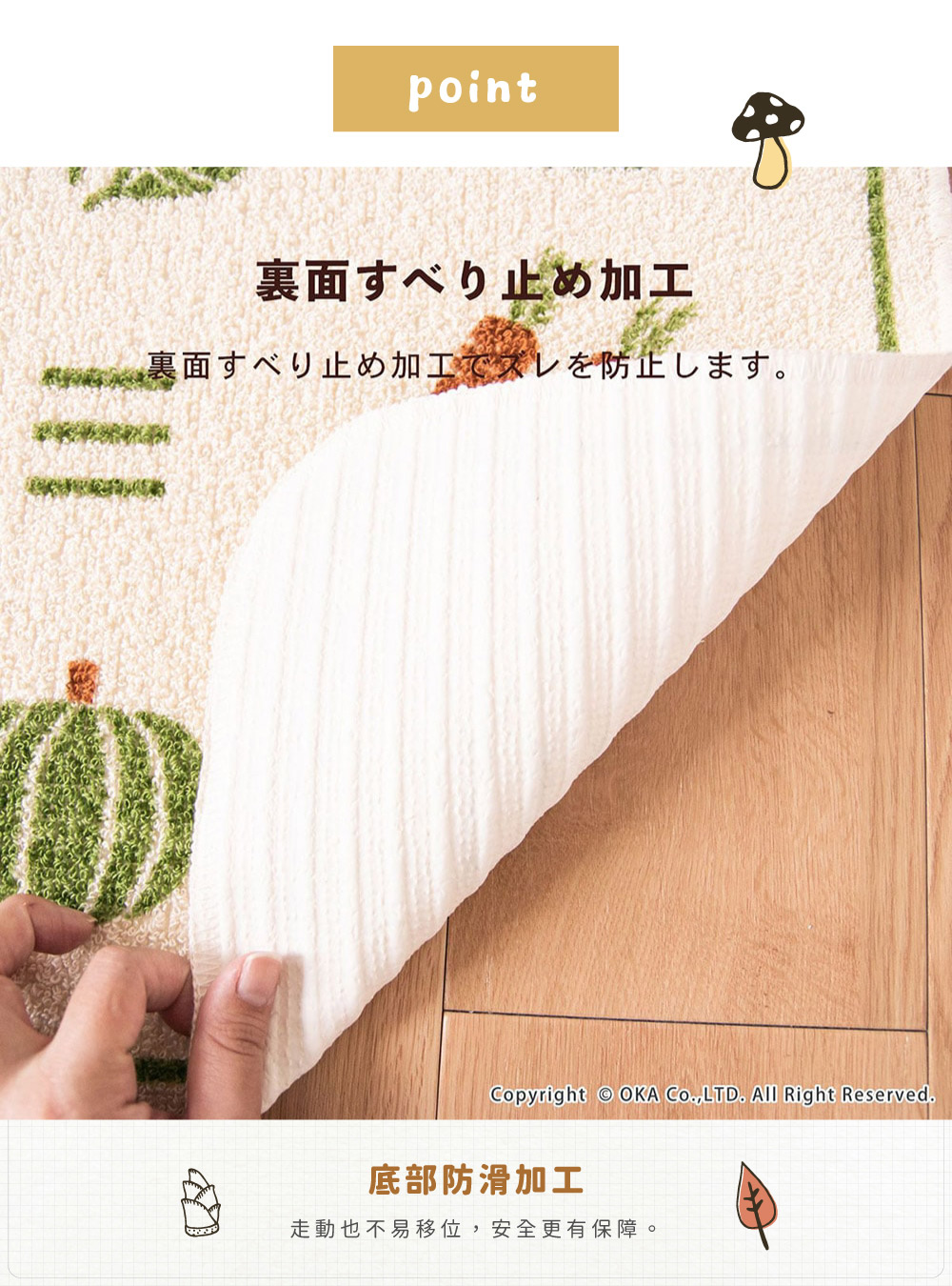 【日本Oka】日本製再生印花廚房地墊45×180cm(秋實之園款/可機洗/厚4mm)