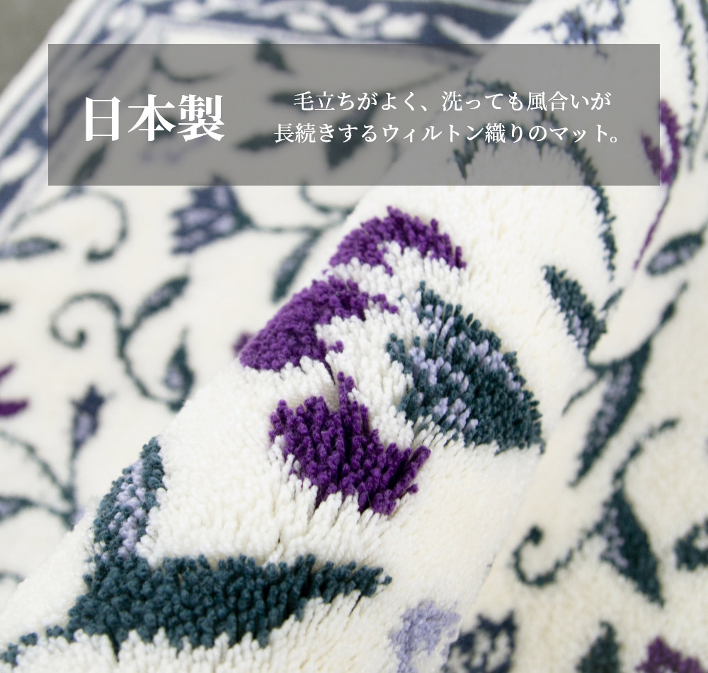 採用比利時進口織布機編織的「威爾頓編織」地墊,也是日本國內唯一的製造商於自家工廠生產製造。