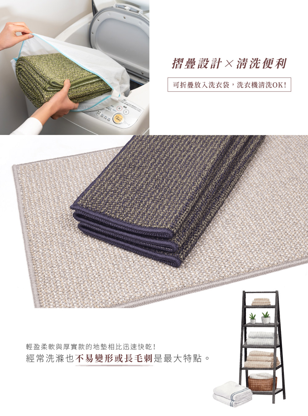 輕盈柔軟可摺疊後清洗,與厚實款的地墊相比迅速快乾!