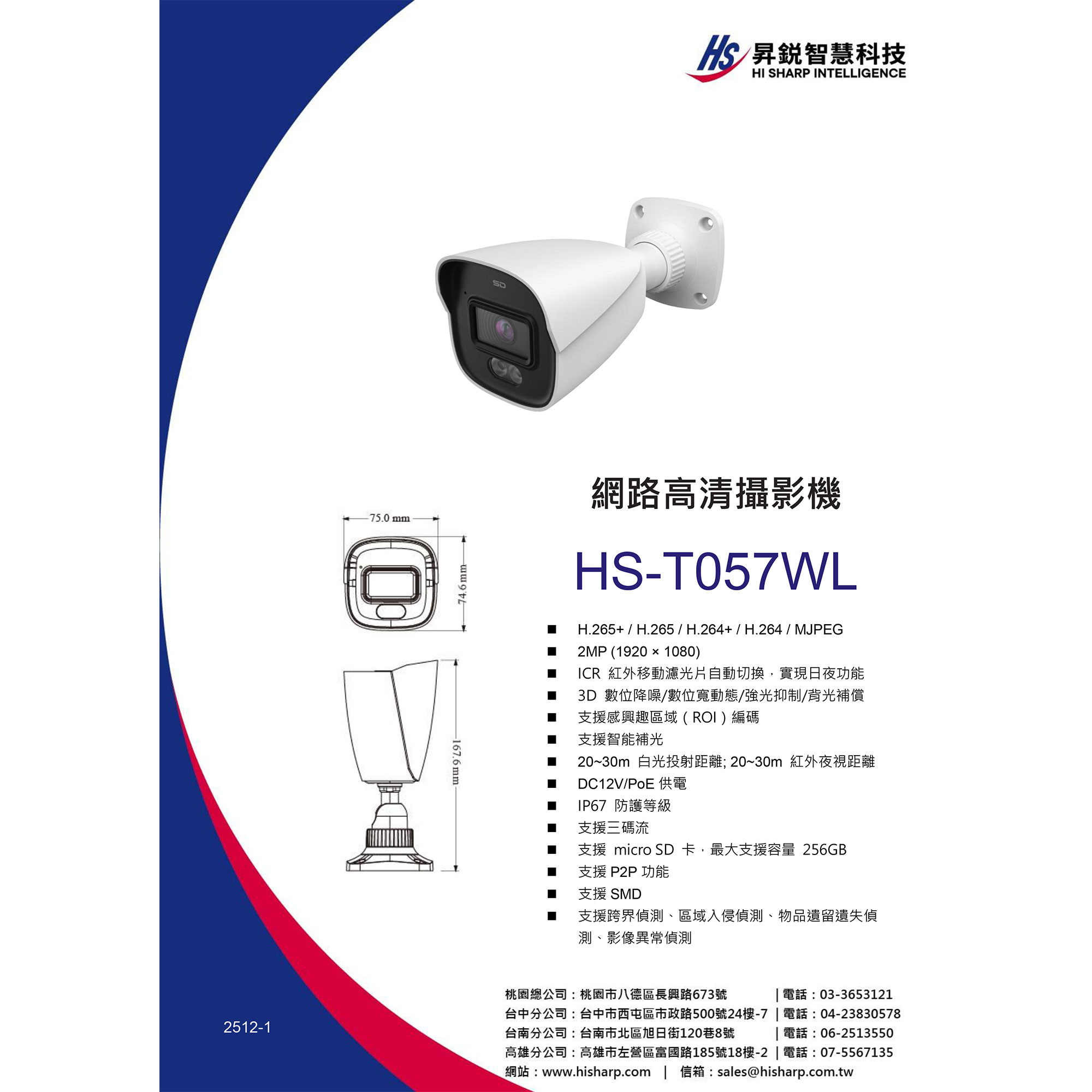 昌運監視器 昇銳 HS-T057WL 200萬畫素 槍型網路攝影機 紅外夜視距離20~30 m 支援PoE供電