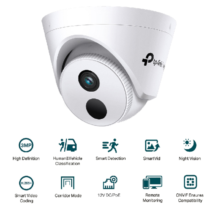 -3MP 高畫質解析度:The VIGI C430I 攝影機具備 3MP 畫質 - 更高的解析度得以補捉更細緻的細節。