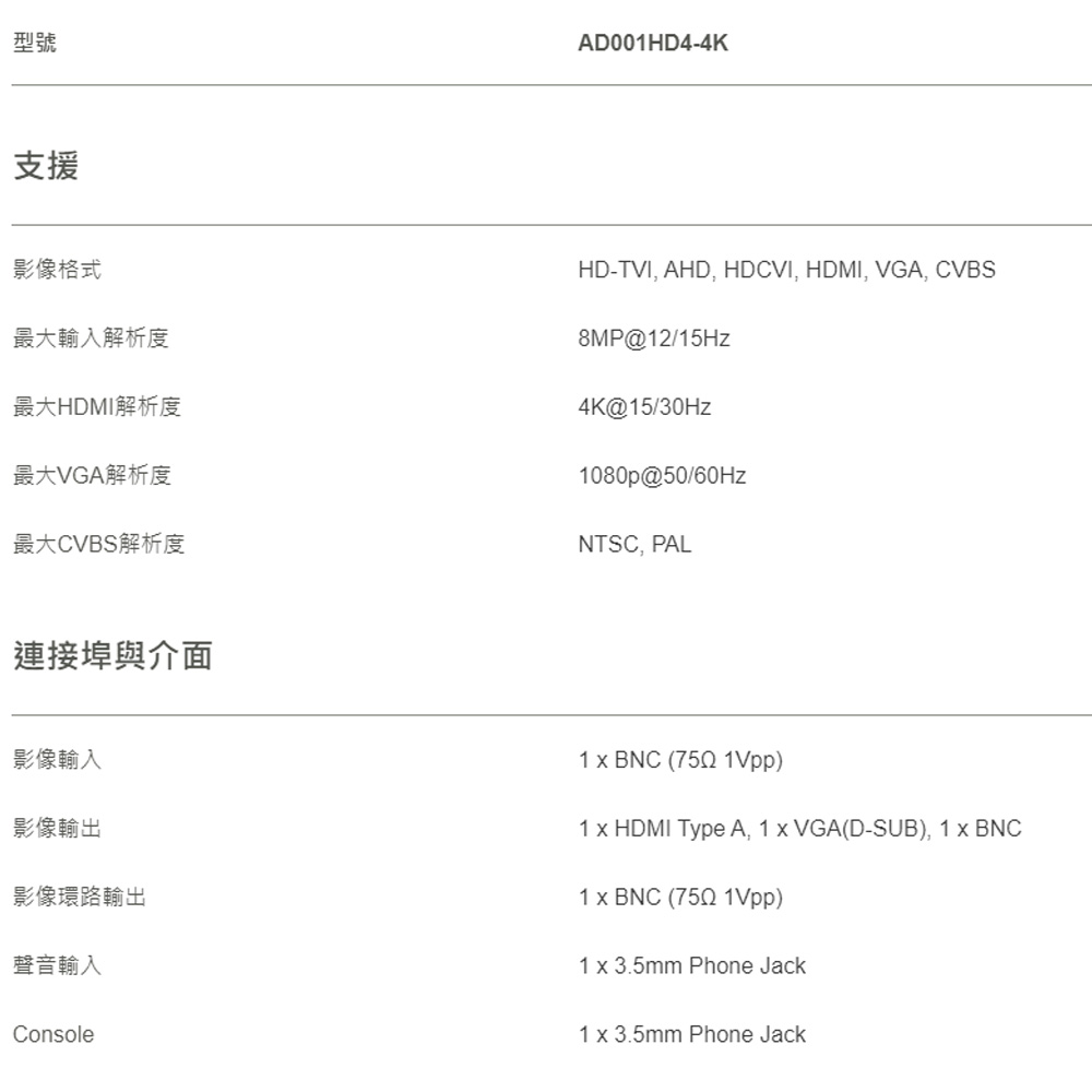 [昌運監視器] AD001HD4-4K 4K HD-TVI AHD CVBS轉HDMI VGA CVBS轉換器