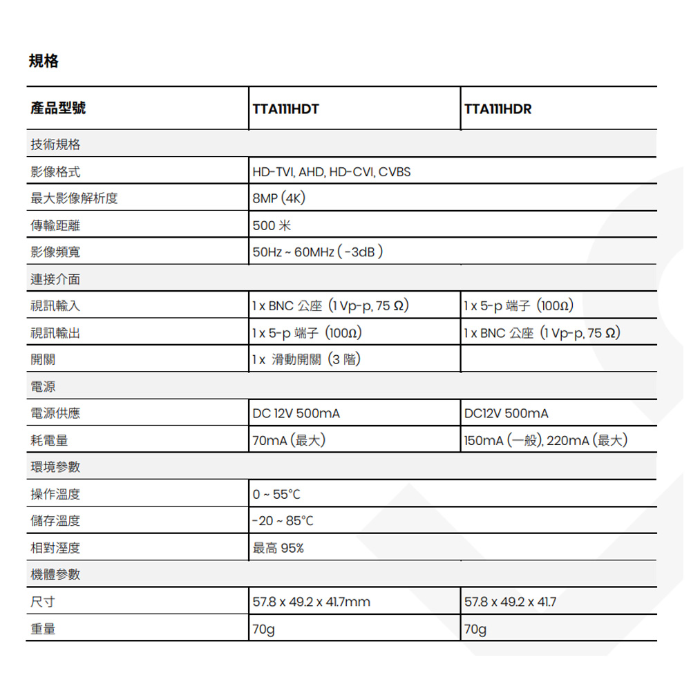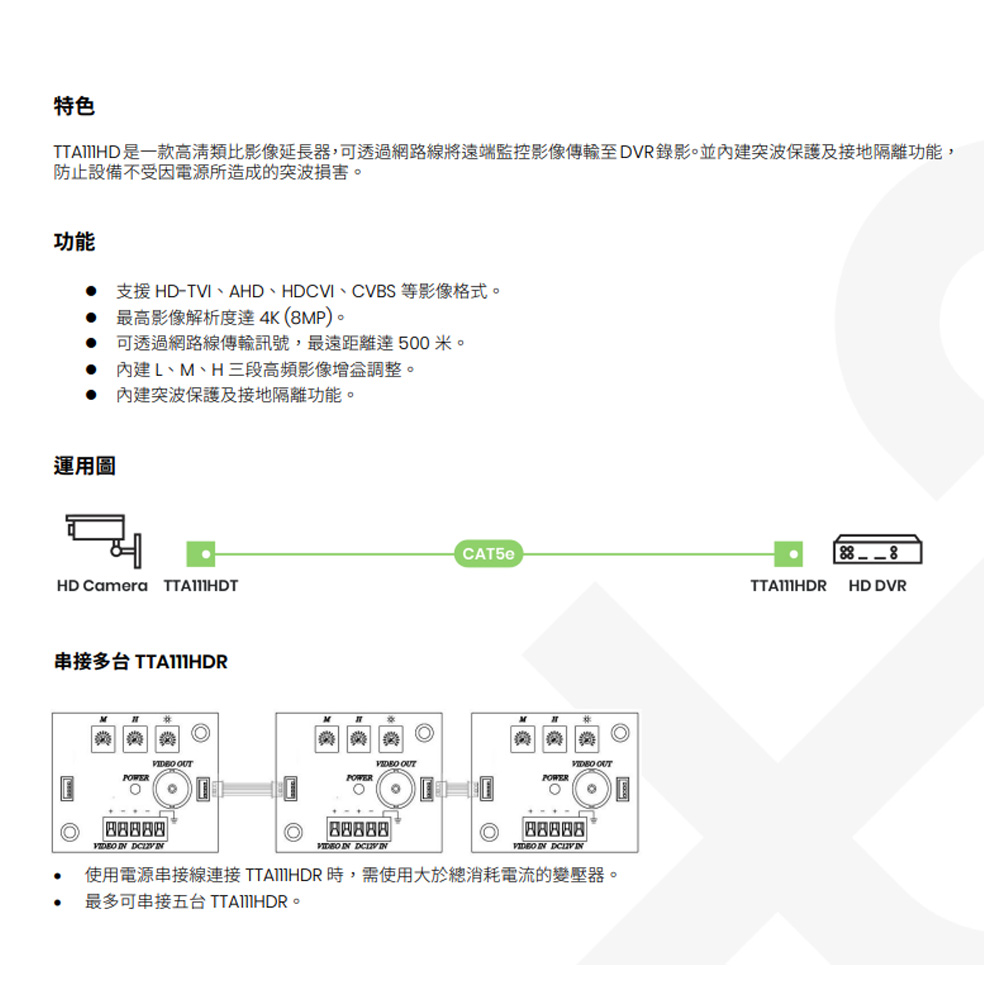 昌運監視器 TTA111HD 4K 高清影像延長器 (T+R) 支援HD-TVI/AHD/HDCVI/CVBS