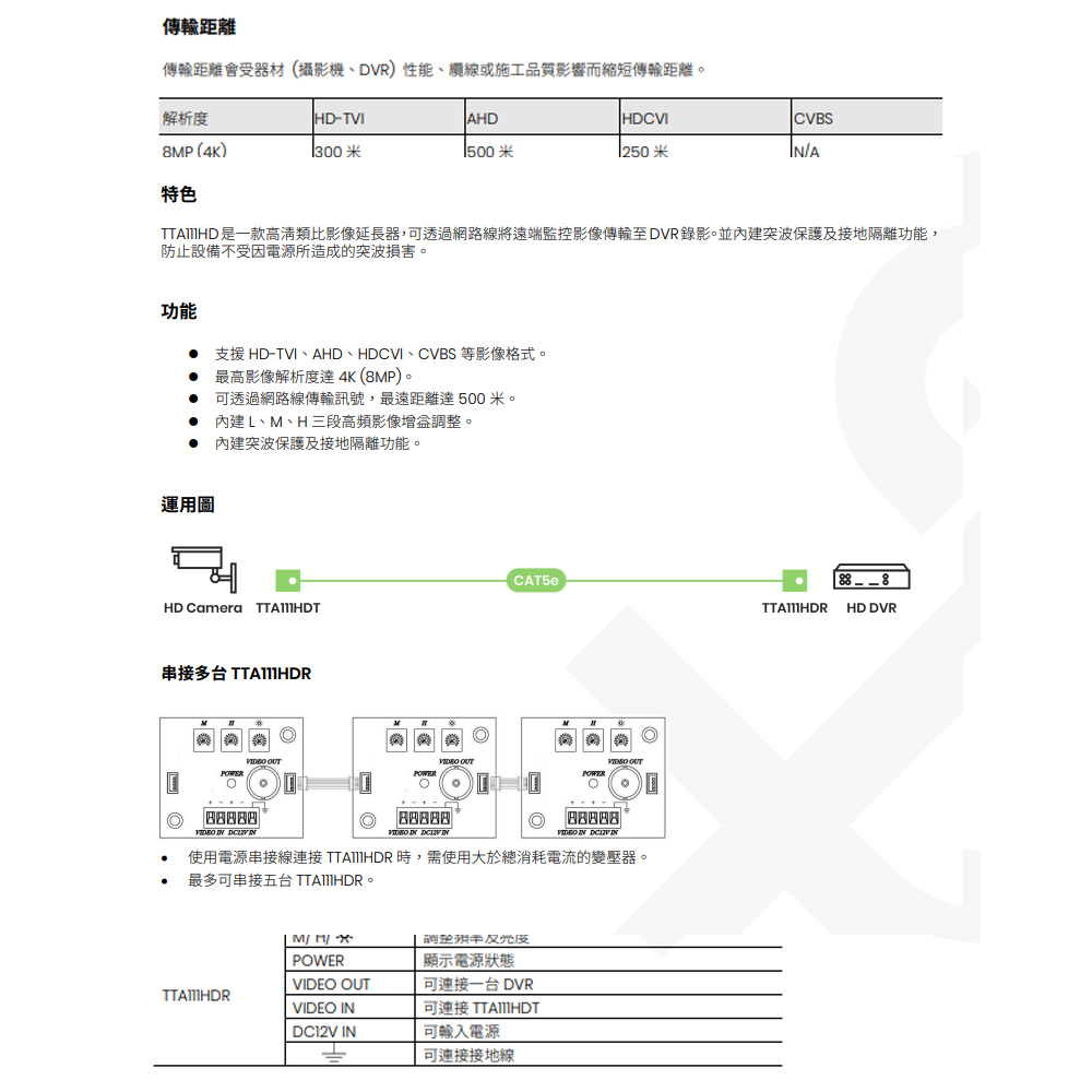 昌運監視器 TTA111HDR 4K 高清影像延長器 R端 接收端 支援HD-TVI/AHD/HDCVI/CVBS