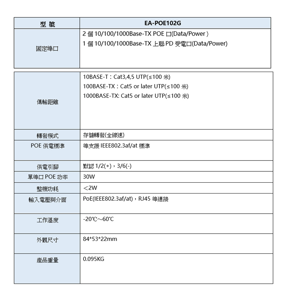 3個10/100/1000Base-TX RJ45埠,前後延伸距離達200公尺