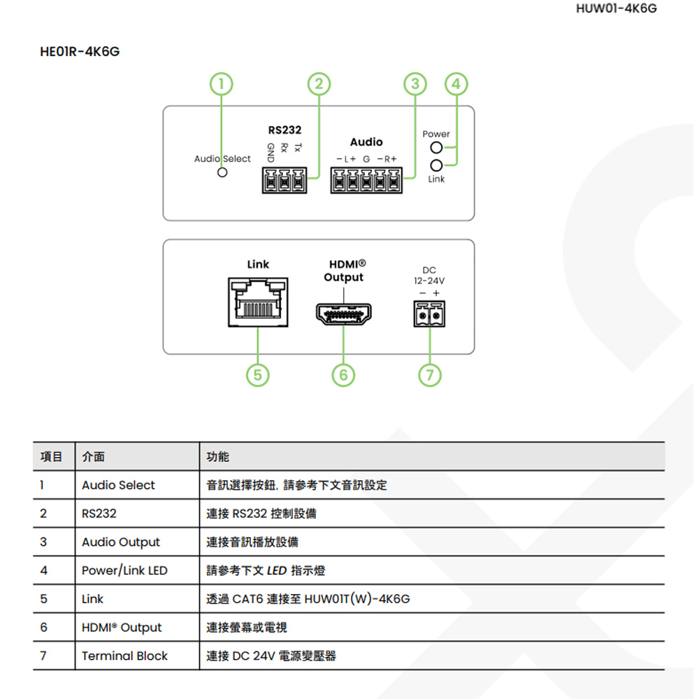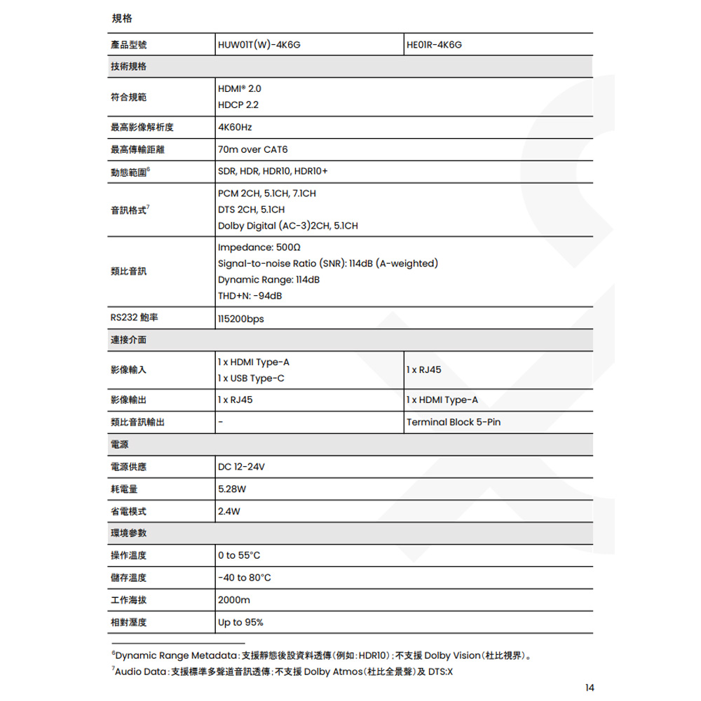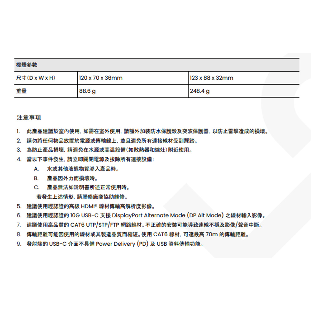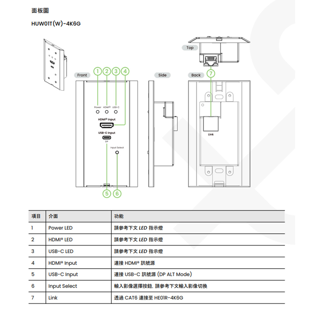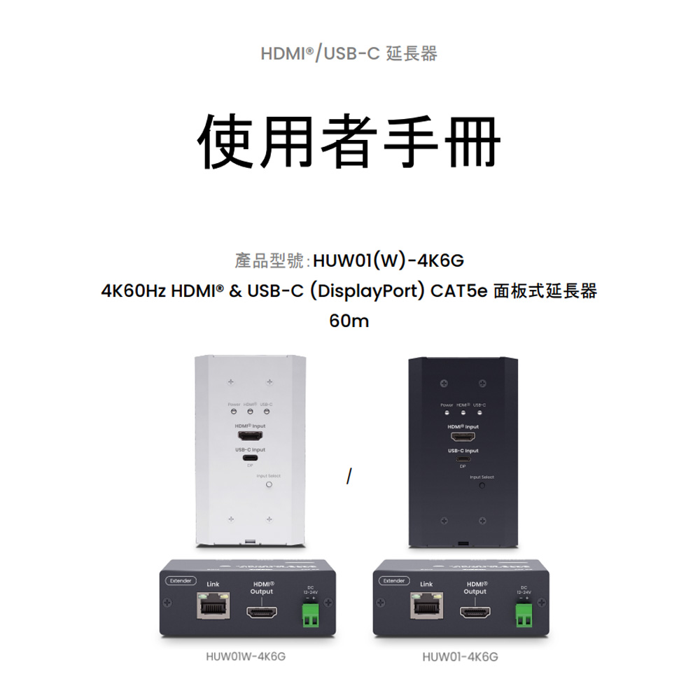昌運監視器 HUW01-4K6G 4K60Hz HDMI®&USB-C(DisplayPort)CAT5e 面板式延長器 60m