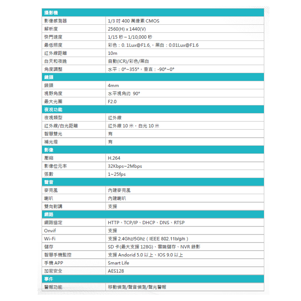 ◾ 300萬畫素,紅外線+白光警示燈◾ 內建麥克風&喇叭,支援雙向對講◾ Micro SD 卡儲存(最大 128G)◾ 移動偵測、影像追蹤功能、上下左右轉動◾ 影像可接入 DJS 錄影主機,可用 DJS APP 監看、控制、雙向對講◾ 搭配 DJS-SD001 智慧捲門開關,讓您可以即時監看影像也能控制捲門開/關◾ 整合 IoT 設備智慧聯動