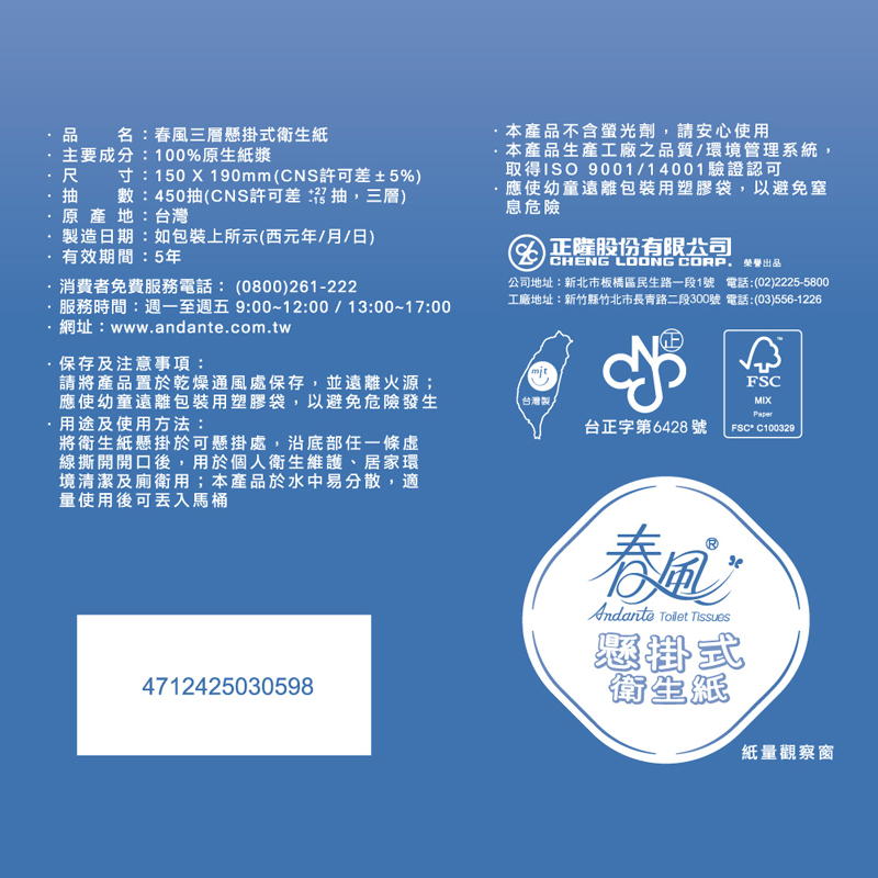 ◎品牌:春風 ◎規格: 450PC抽 x 1 x 1Bag袋