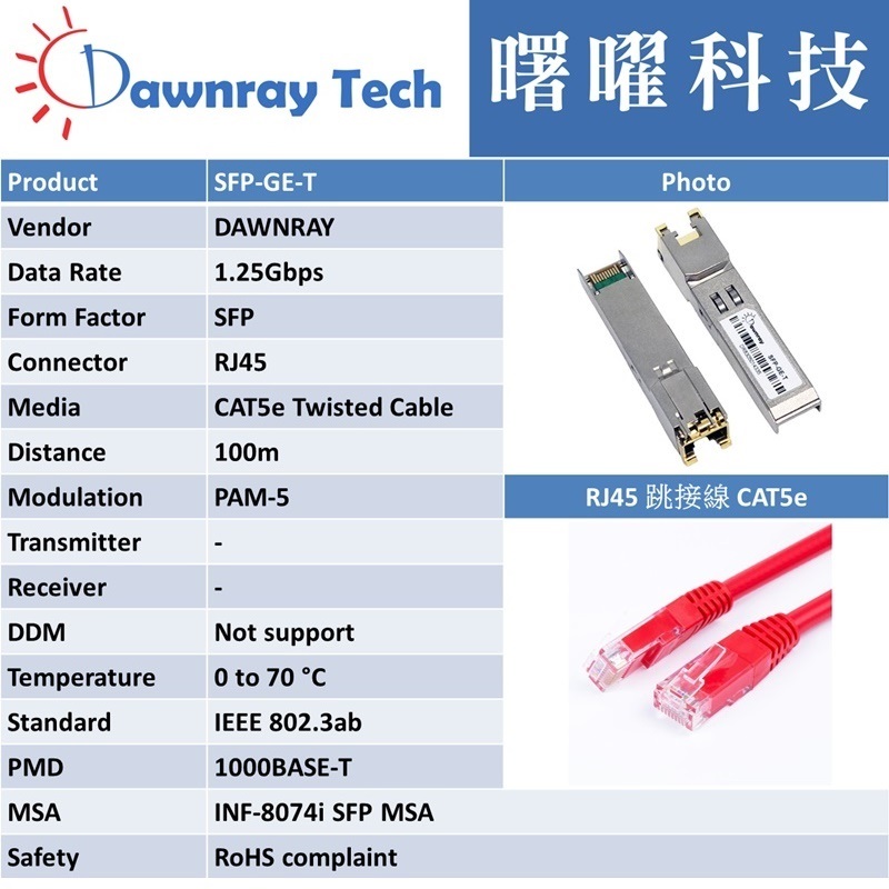 【曙曜】Extreme Networks MGBIC-02 相容 銅纜模組 光轉電 RJ45模組 mini-GBIC 1G CAT5e/CAT6 RJ45 100 公尺 熱插拔 3.3V 單電壓