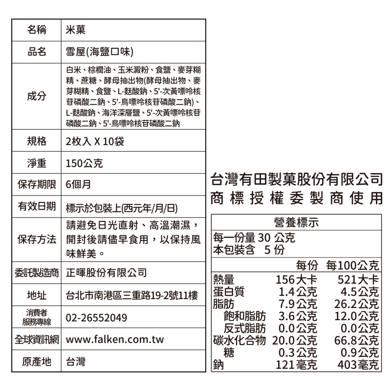 ◎品牌:有田製菓 ◎規格: 150g克 x 1 x 1Bag包