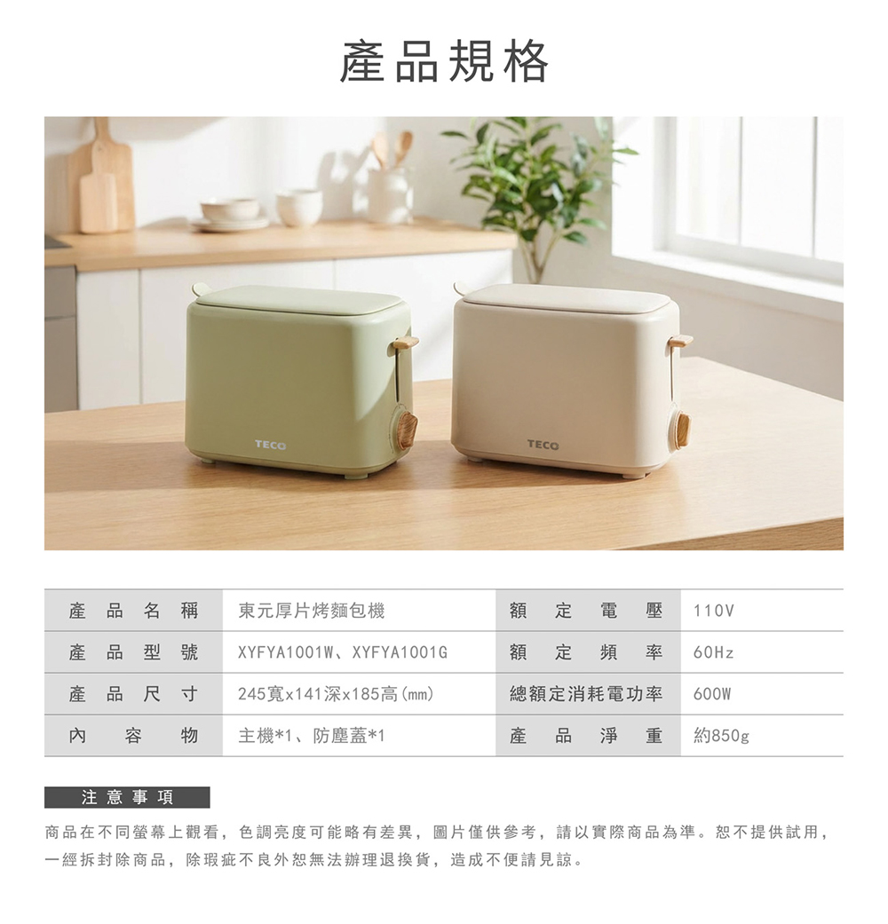 【東元】厚片烤麵包機XYFYA1001