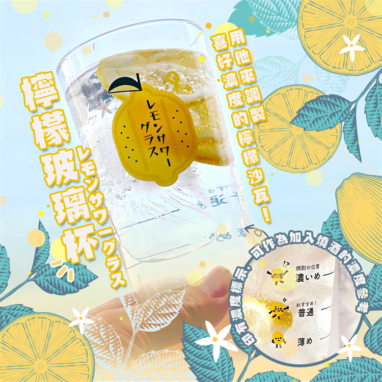 ◼ 可愛檸檬圖案,杯身印製濃度標示,可依個人喜好調配◼ 可用於日常飲水或酒類.氣泡飲等清涼飲品使用◼ 家用及店面統一擺放也相當適合◼ 清透精緻,高品質的玻璃製品◼ 附盒子,可妥善保存,送禮/自用都相當適合唷!◼ 可用於洗碗機,但因不是耐熱玻璃,請勿在微波爐中使用