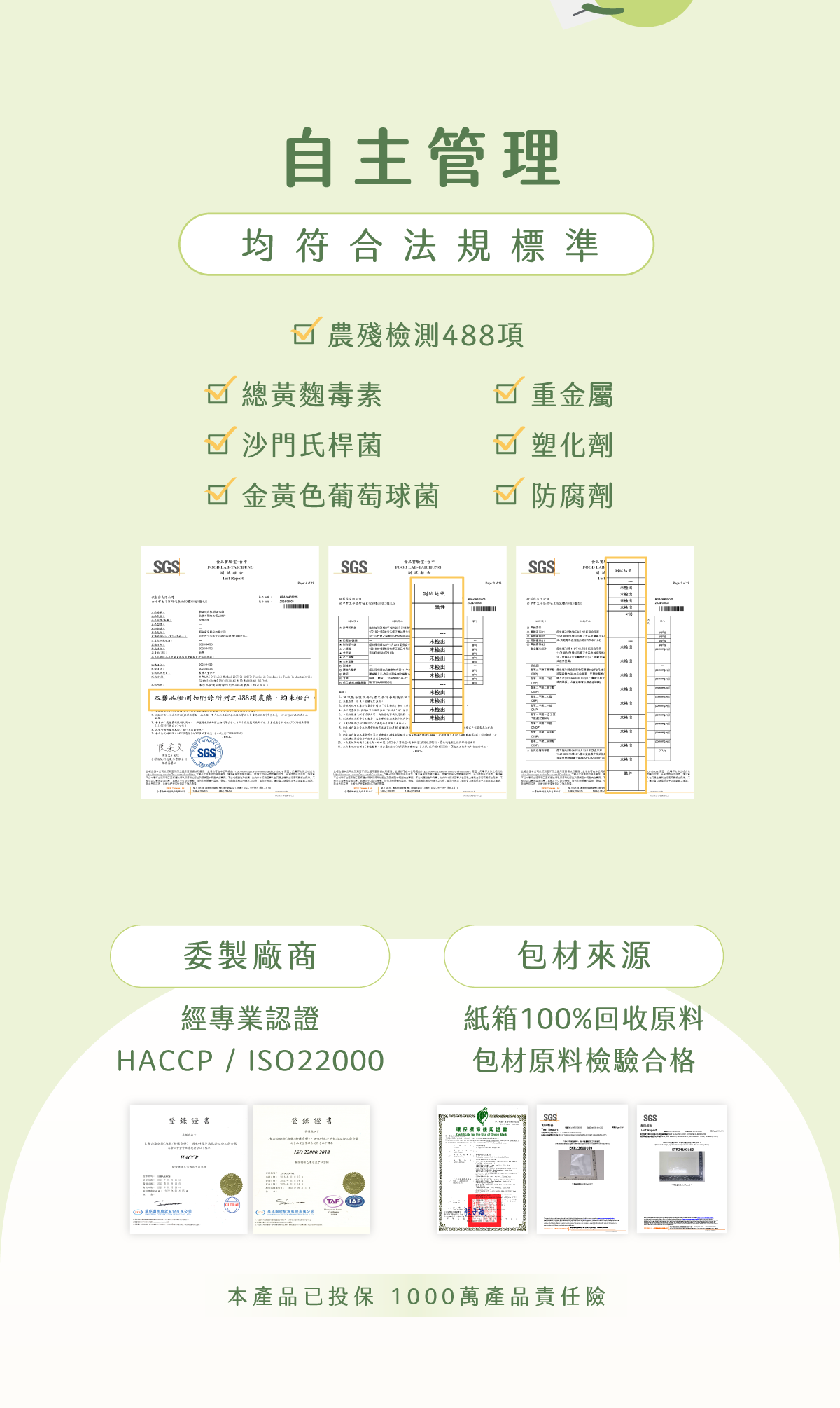 本產品含有大豆、堅果種子、麩質穀物及其製品。本產品生產廠房,其設備有處理奶製品、花生、芝麻及其製品。有相關過敏疑慮者請根據個人情況謹慎使用