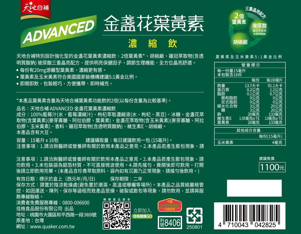 天地合補金盞花葉黃素濃縮飲15mlx16入