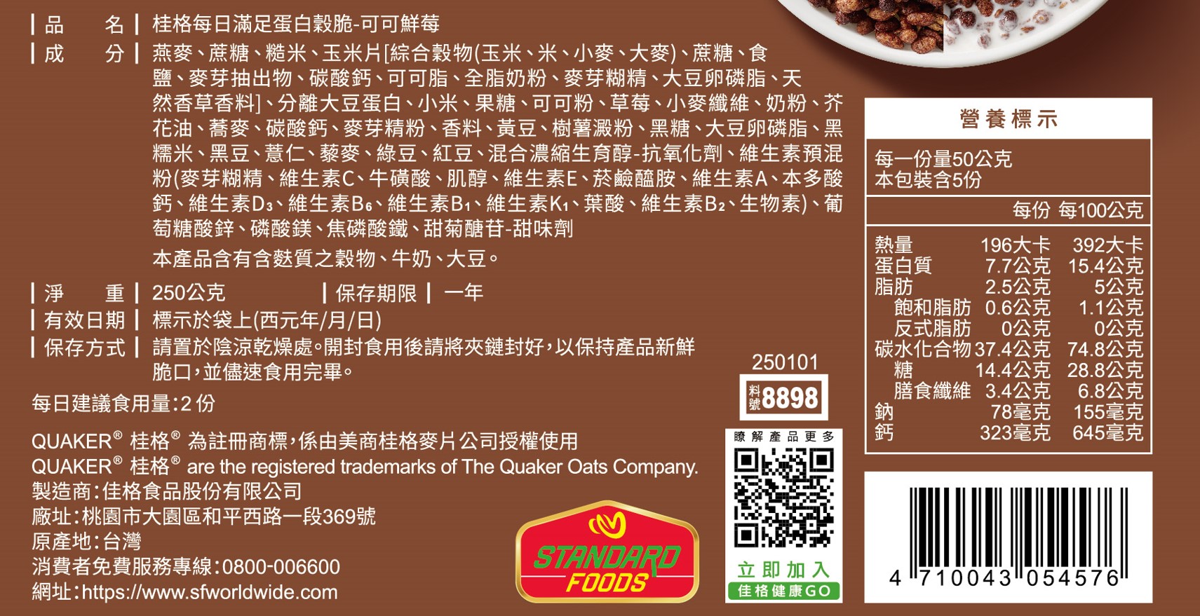 桂格每日滿足蛋白穀脆-可可鮮莓250g
