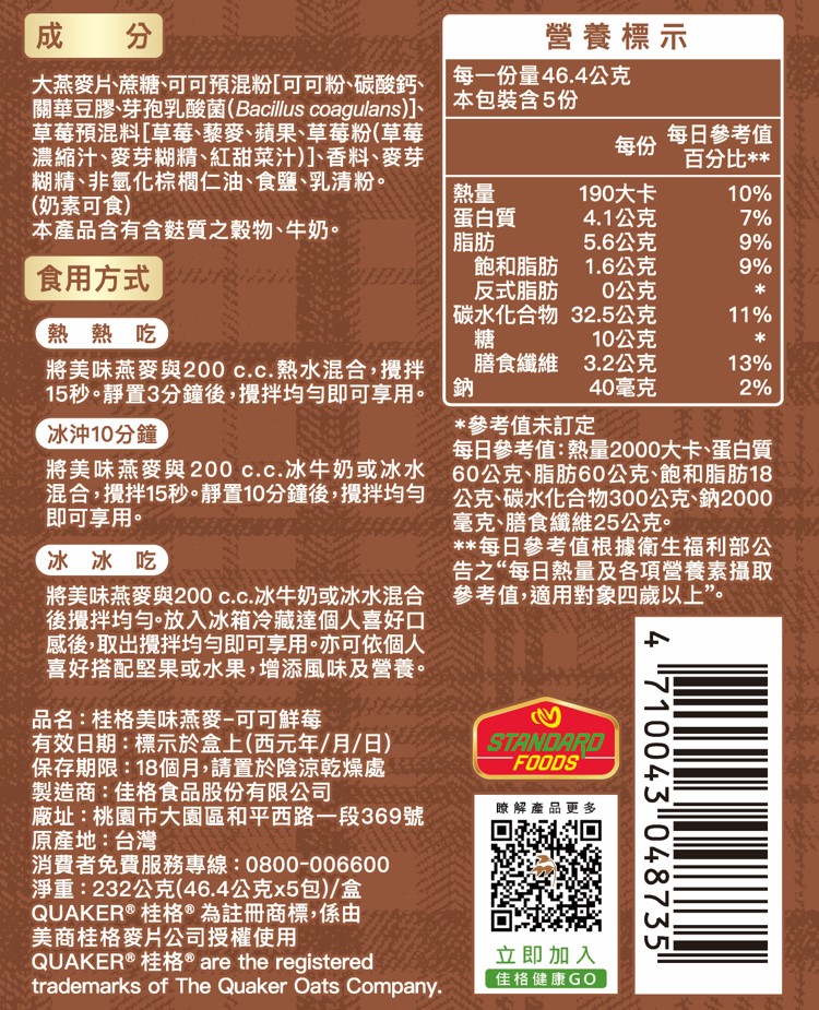 ◎品牌:桂格 ◎規格: 232g克 x 1 x 1BOX盒