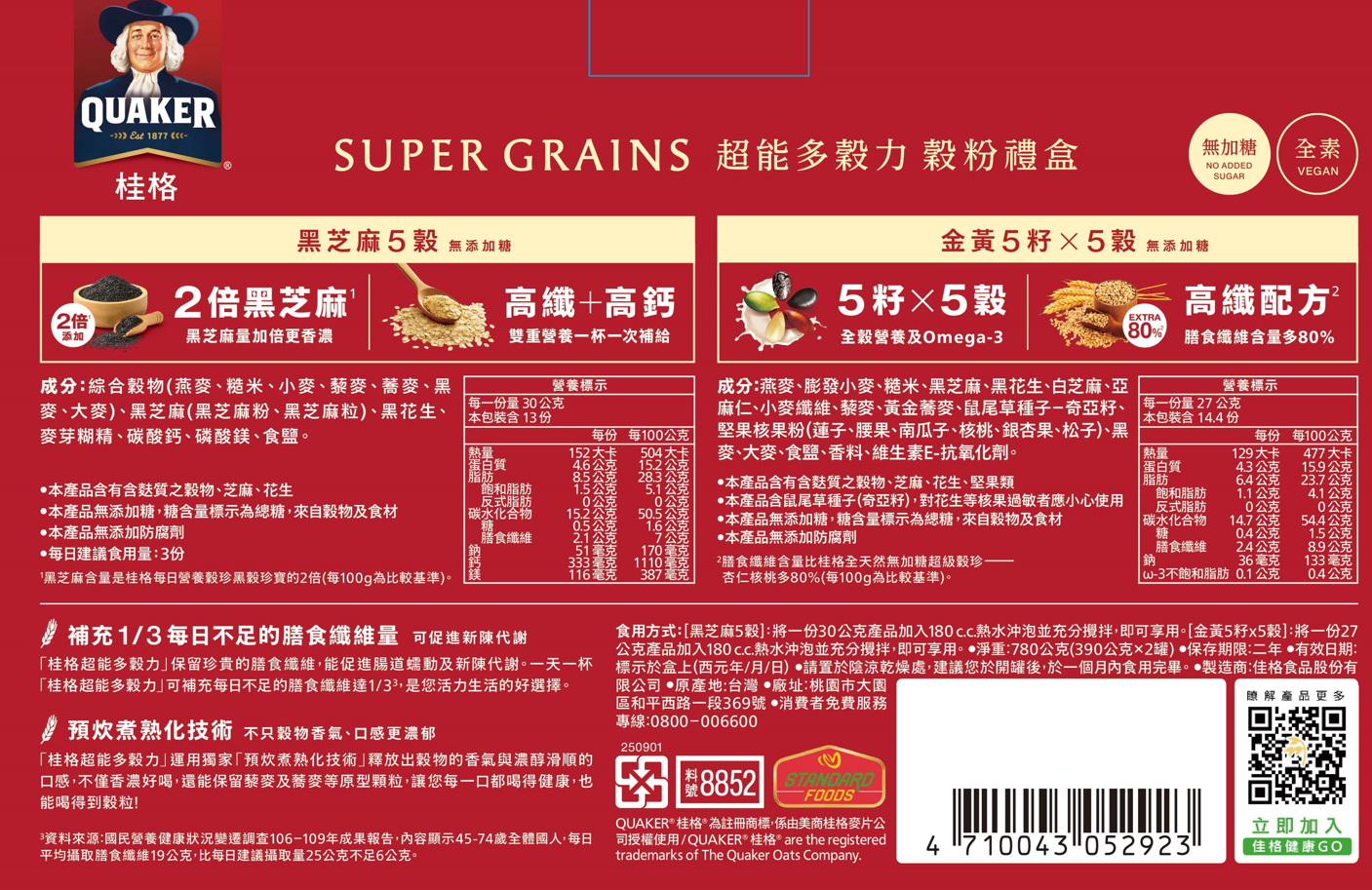 【限量】桂格超能多穀粉禮盒(無添加糖)780g(無提袋)