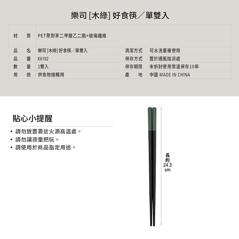 樂司好食筷單雙入-木綠