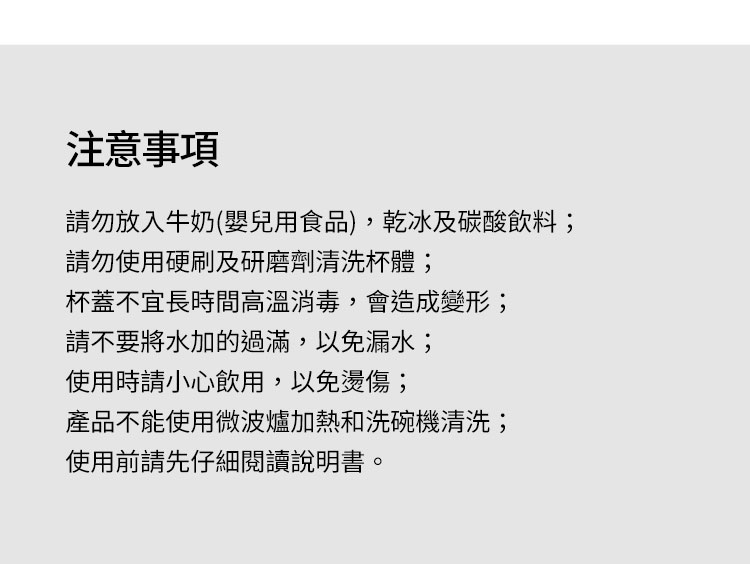 – 請勿放入牛奶、嬰兒食品、碳酸飲料