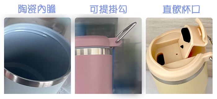 ★陶瓷內膽塗層,清潔方便無負擔。★#304不銹鋼真空,保冰保溫更持久。★手提掛勾,隨時隨地帶著走。◇內膽易潔陶瓷塗層,不留易味不挑飲品,清潔方便無負擔。◇#304真空瓶身給您最佳的隔絕保溫保冰效果。◇可提手把,輕便攜帶,讓喜愛的飲品伴你隨行。◇直飲杯口,可使用吸管優雅飲用,亦可爽快直飲。