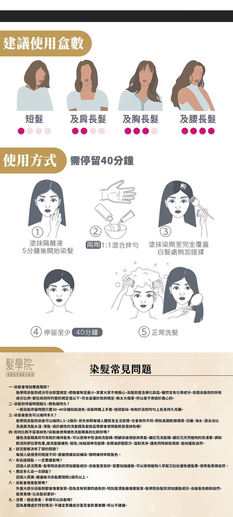 拒當「白髮魔女」,想要養髮可以這樣做添加植物菁華,保護頭皮,染後無刺鼻味,髮絲飄香容量:第一劑40ml / 第二劑40ml