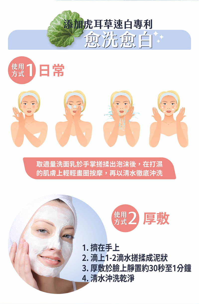 以高濃度胺基酸,結合專利亮白成分,溫和洗淨油脂髒污,同時緊緻毛孔,提供肌膚淨白透亮光潤感。