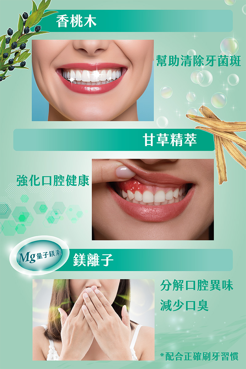 配合正確的刷牙習慣,能幫助對抗牙菌斑,維護口腔與牙齒健康