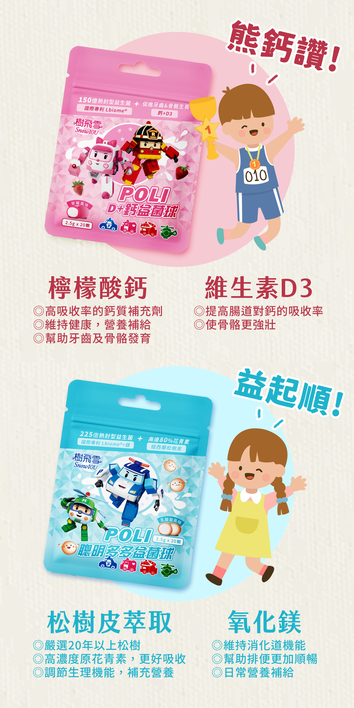【樹飛雪】三入組 POLI 波力益菌球(乳酸菌多多口味) 20顆x3包 共150g
