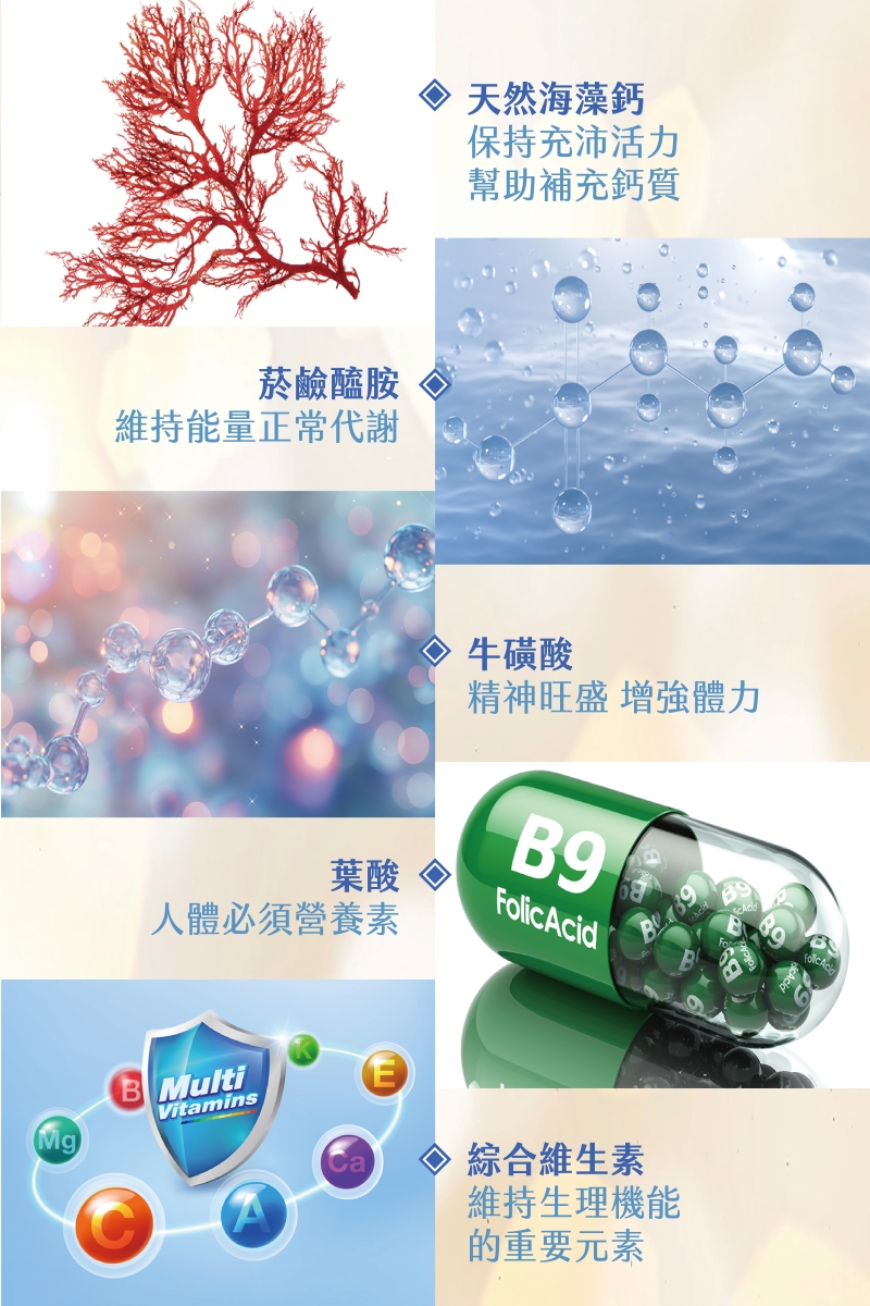 成分:葡萄糖、麥芽糊精、多醣體萃取粉末(靈芝Ganoderma lucidum菌絲體-液態培養)、食鹽(氯化鈉、碘酸鉀)、檸檬酸、檸檬香料粉(乳糖、香料、二氧化矽)、海藻鈣、氯化鉀、牛磺酸、綜合維生素(維生素 C、維生素 E、麥芽糊精、菸鹼醯胺維生素A粉末、本多酸鈣、葉酸、生物素、維生素 B12、維生素 D3、維生素 B1、維生素 K1、維生素 B6、維生素 B2)、二氧化矽、蔗糖素(甜味劑)