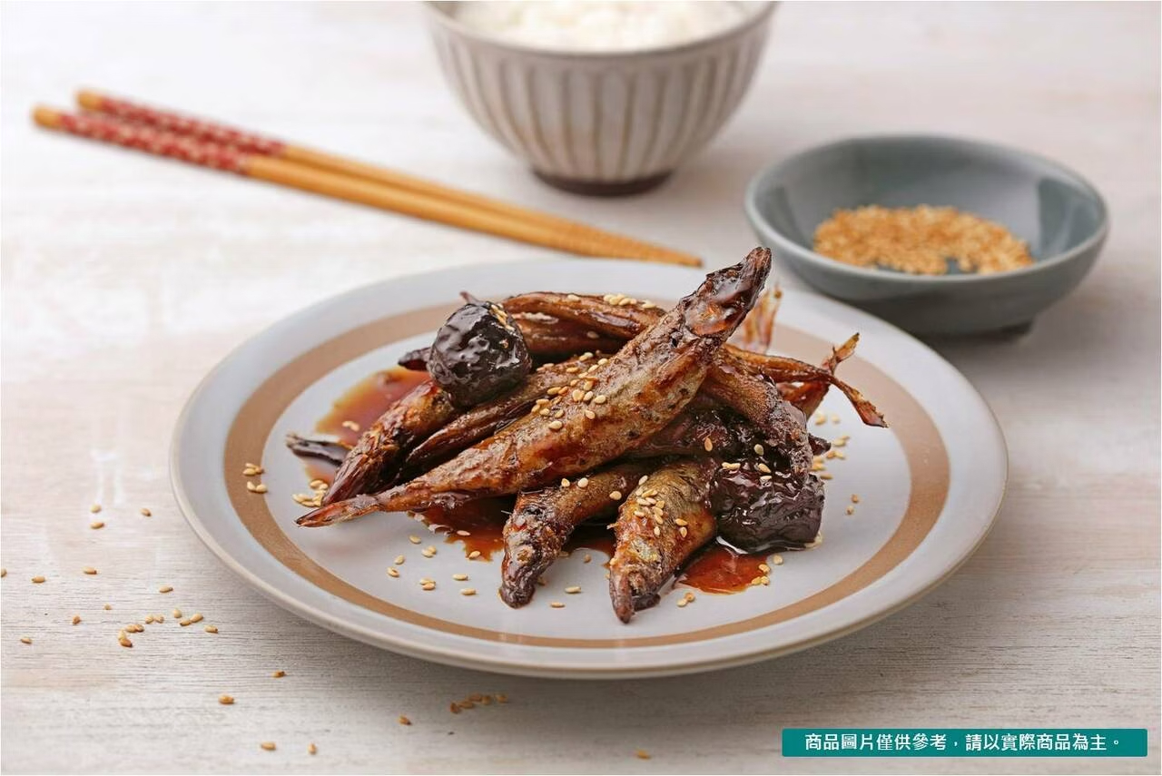 將柳葉魚以蜜棗醬醃製,酸酸甜甜的滋味,香氣留在口中久久不散,涮嘴到也能當追劇零嘴。