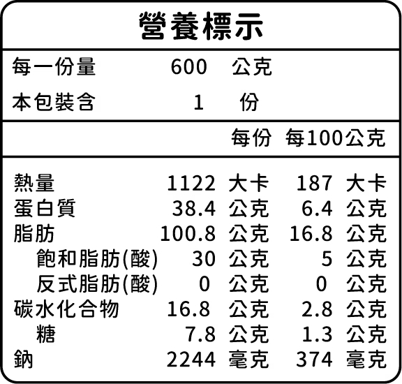 水、牛肉(美國)、蕃茄、醬油、豆瓣醬〔辣椒、水、非基改黃豆、鹽、乙醯化己二酸二澱粉(黏稠劑)、麻油、調味劑(L-麩酸鈉、5’–次黃嘌呤核苷磷酸二鈉、5 ’–鳥嘌呤核苷磷酸二鈉)、糖、三仙膠(黏著劑)、乳酸〕、米酒、牛油(美國)、辣椒醬〔辣椒、鹽、水、辣椒油、芝麻油、黏稠劑(乙醯化己二酸二澱粉)、調味劑(琥珀酸二鈉)、甜味劑(醋磺內酯鉀、甘草萃)〕、冰糖、鹽、調味劑(L-麩酸鈉、氯化鈉)
