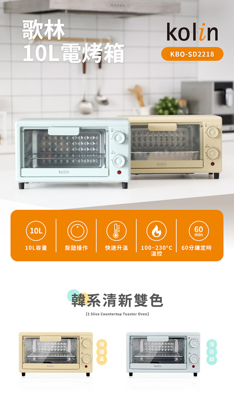 【歌林】10L雙旋鈕電烤箱KBO-SD2218
