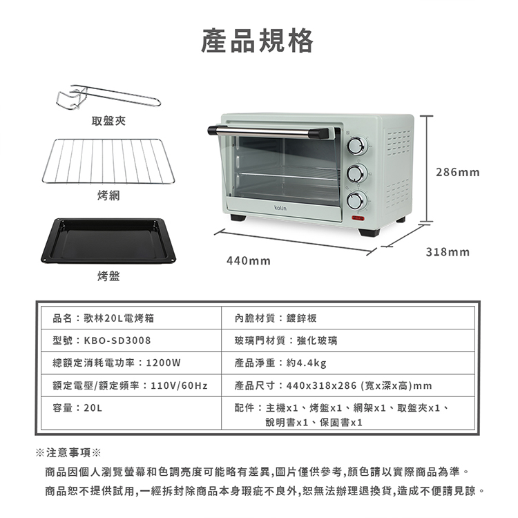 【歌林】20L電烤箱KBO-SD3008