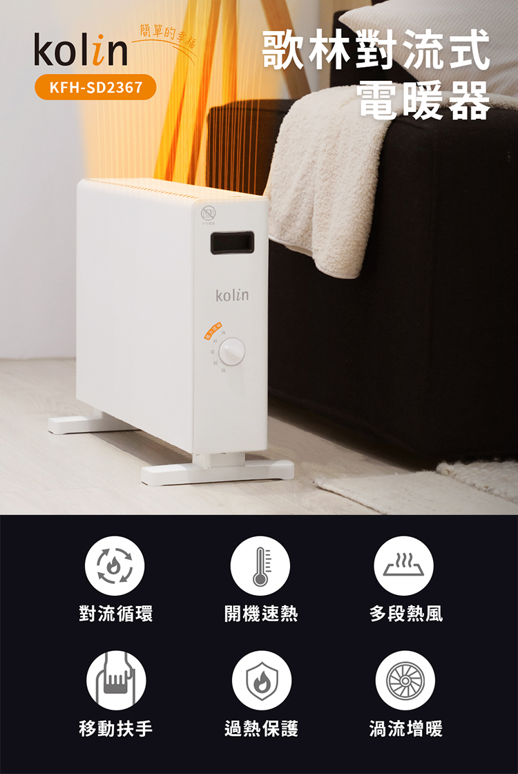 歌林對流式電暖器KFH-SD2367