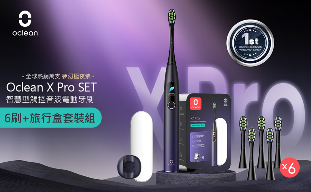 [歐可林] X Pro智慧音波電動牙刷_6刷+盒套裝組(極夜紫)